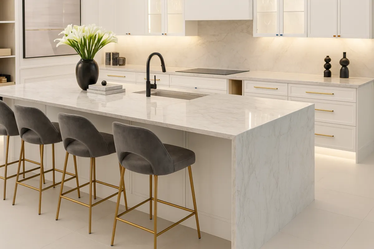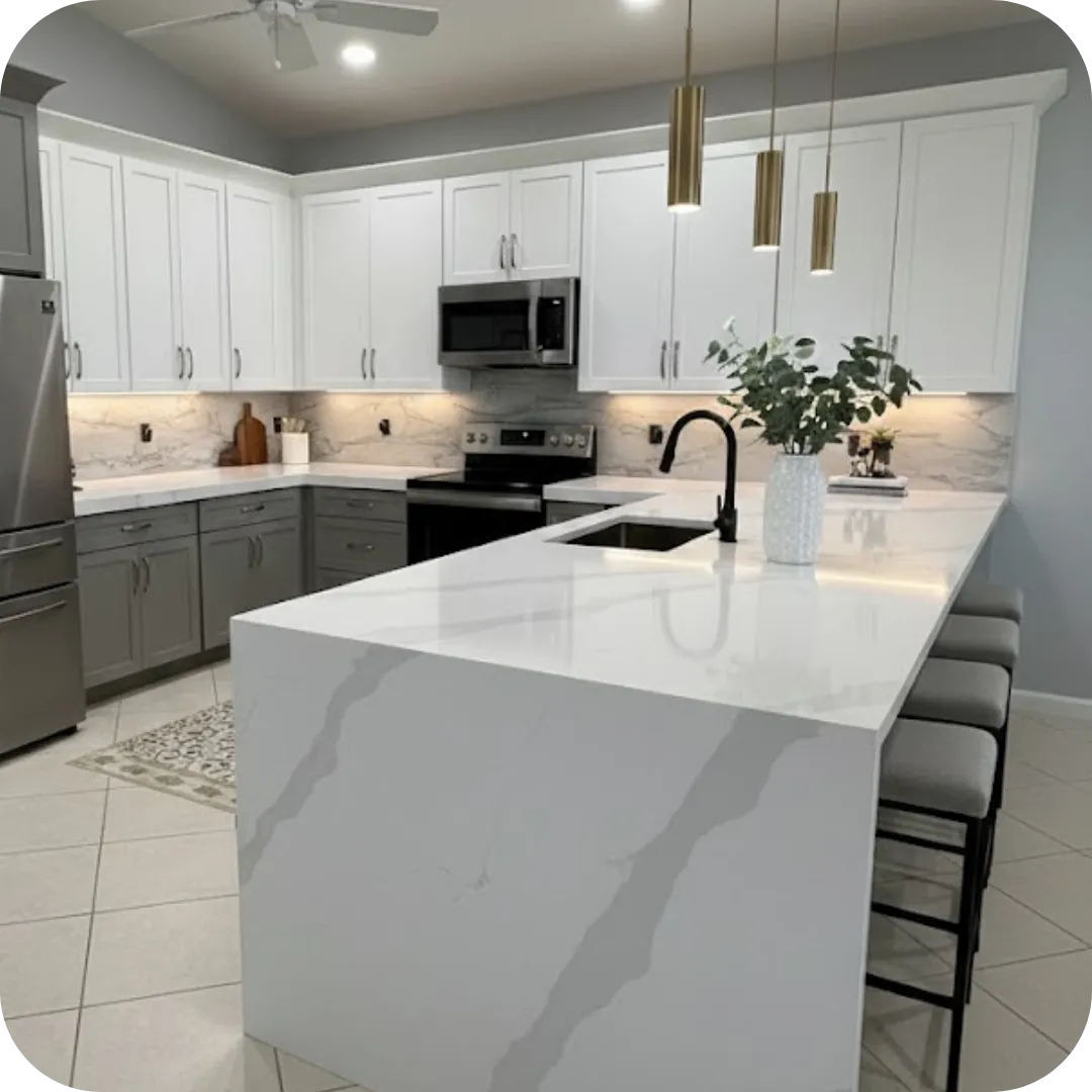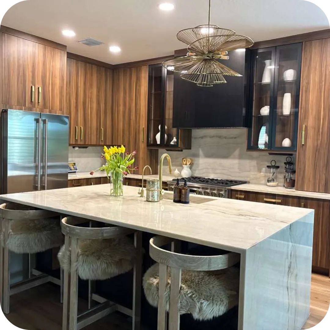 With a complete portfolio of natural stones and engineered surfaces — Quartz, Quartzite, Granite, Marble, Calcite, and Porcelain